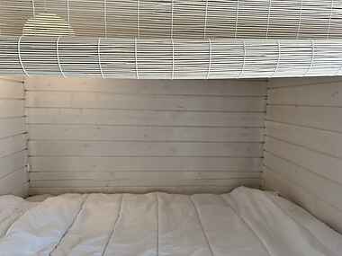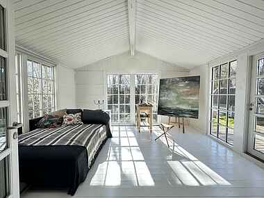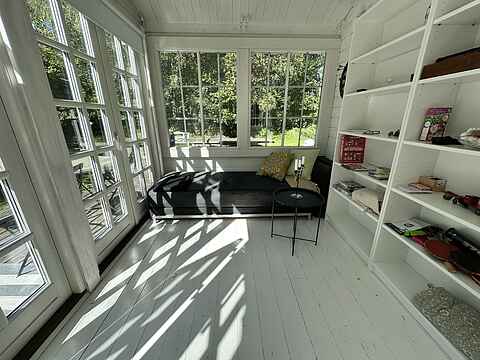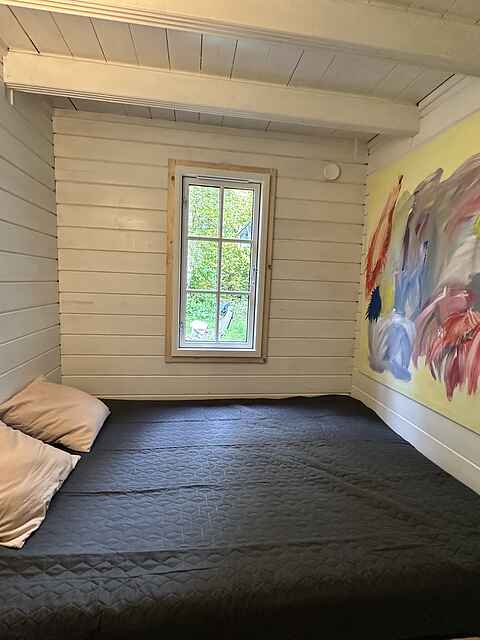 Villaen er indrettet med et lille soveværelse og en alkove med plads til to voksne i hver. Atelieret er også indrettet med dobbeltseng og herudover er der to sovepladser i tv-stuen til rådighed.. Endelig er der også en babyseng.