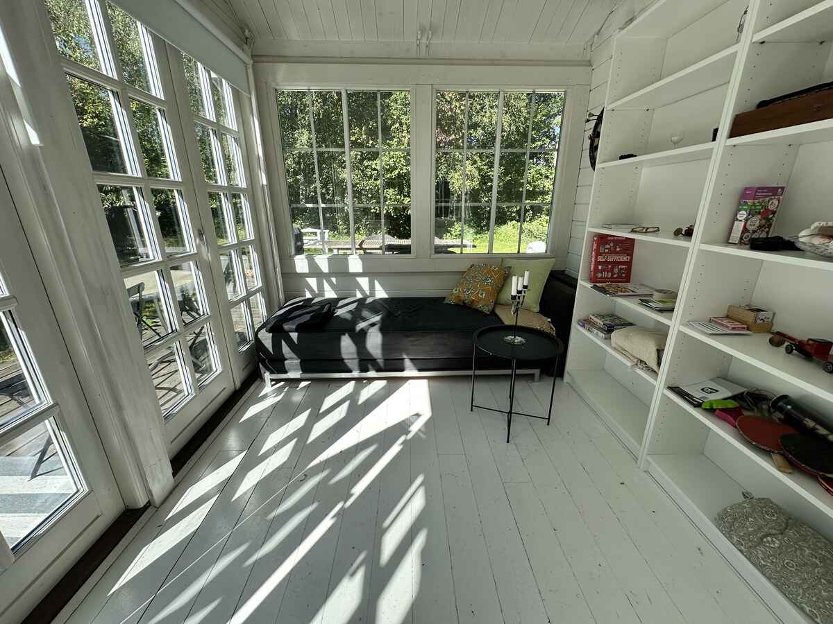Villaen er et klassisk sommerhus med en spisestue, en tv-stue , et atelier og terrassestue. Her kan man nyde morgenkaffen i den solrige udestue, der åbner ud til en stor terrasse med dels to solstole og et stort spisebordsarrangement med plads til ti gæster. Man kan også slå fødderne op i TV-stuen eller hygge sig med bordfodbold, dart og bobspil i terrassestuen.