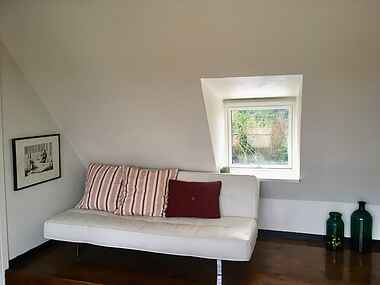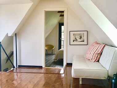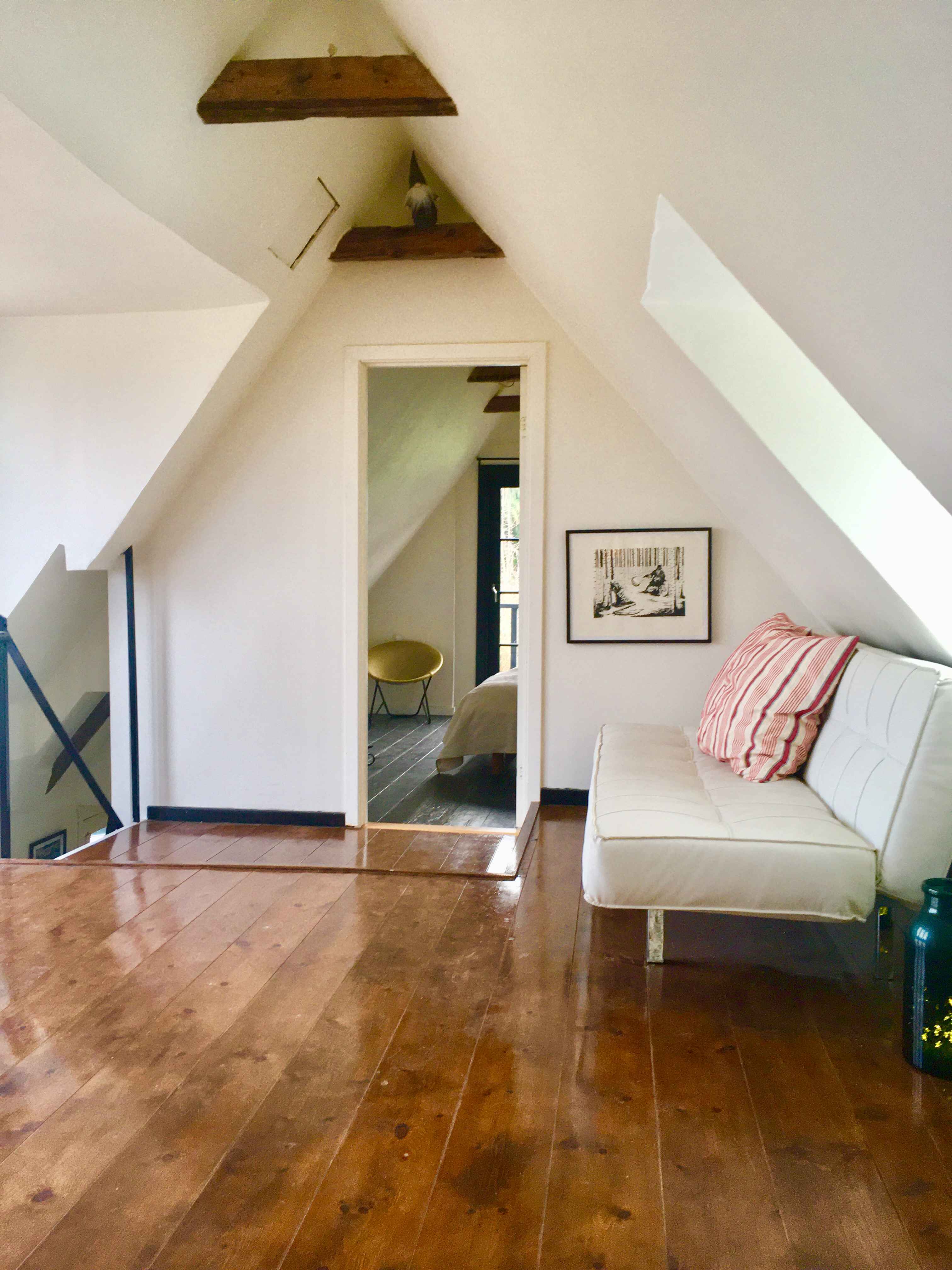 Garderhuset i Vollerup er i 2 etager og rummer i stueplan køkken og stor sofa/spisestue med brændeovn samt badeværelse og entre. på 1.sal er der åbnet op til kip og der er 1 stort soveværelse med balkon samt 2 ekstra sengepladser på 1.salen. Der er fra 1.sal udgang til stor 50 kvm tagterrasse med den fineste udsigt over marker og skov. Derudover en stor have med 2 andre terrasser.