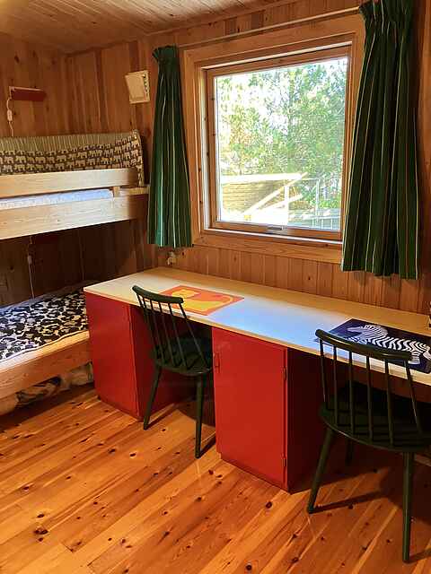Huset har en rummelig stue med loft til kip, brændeovn og spiseplads til 6 personer. Tre værelser giver fleksible sovepladser til både familier og grupper. Køkkenet er klassisk og praktisk indrettet med basiskøkkenudstyr samt en ismaskine. Badeværelset er funktionelt.