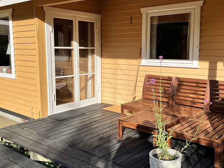 Solhi er et charmerende, personligt indrettet træsommerhus med WiFi, stor have på 1200 kvm og flere terrasser, hvor både sol og skygge inviterer til afslapning. Indretningen kombinerer originale elementer med moderne bekvemmeligheder.