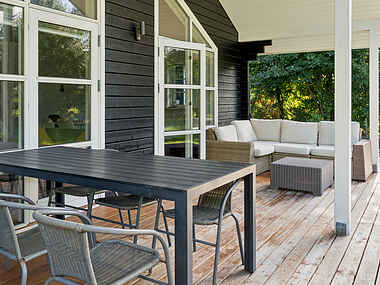 Slap også af på den rummelige terrasse, mens jeres børn spiller fodbold på græsplænen eller bare tumler rundt som de har lyst. Den nærmeste sandstrand ligger kun en kort gåtur væk og tilbyder ideelle betingelser for afslappende timer ved havet. Benyt lejligheden til en forfriskende dukkert og udforsk de idylliske omgivelser ved vandreture eller cykelture, for at nyde den friske havluft fuldt ud.