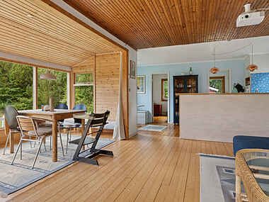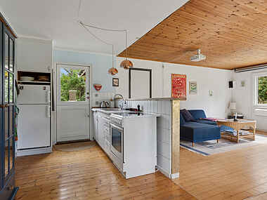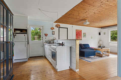 Dette sommerhus på 72 m² rummer tre soveværelser med i alt fem sovepladser + en barneseng. Huset har et hyggeligt køkken alrum med god plads. Huset er børne og baby venligt. Fx med to Trip Trap højstole og et puslebord.