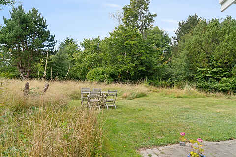 Boligen er placeret på en 2500 m² stor naturgrund, hvor man kan være helt uforstyrret. Grunden indbyder til leg, spil og afslapning under åben himmel, og om aftenen kan man rykke indenfor og nyde film på husets projektor (Google-TV), der giver en hyggelig hjemmebio-stemning.
