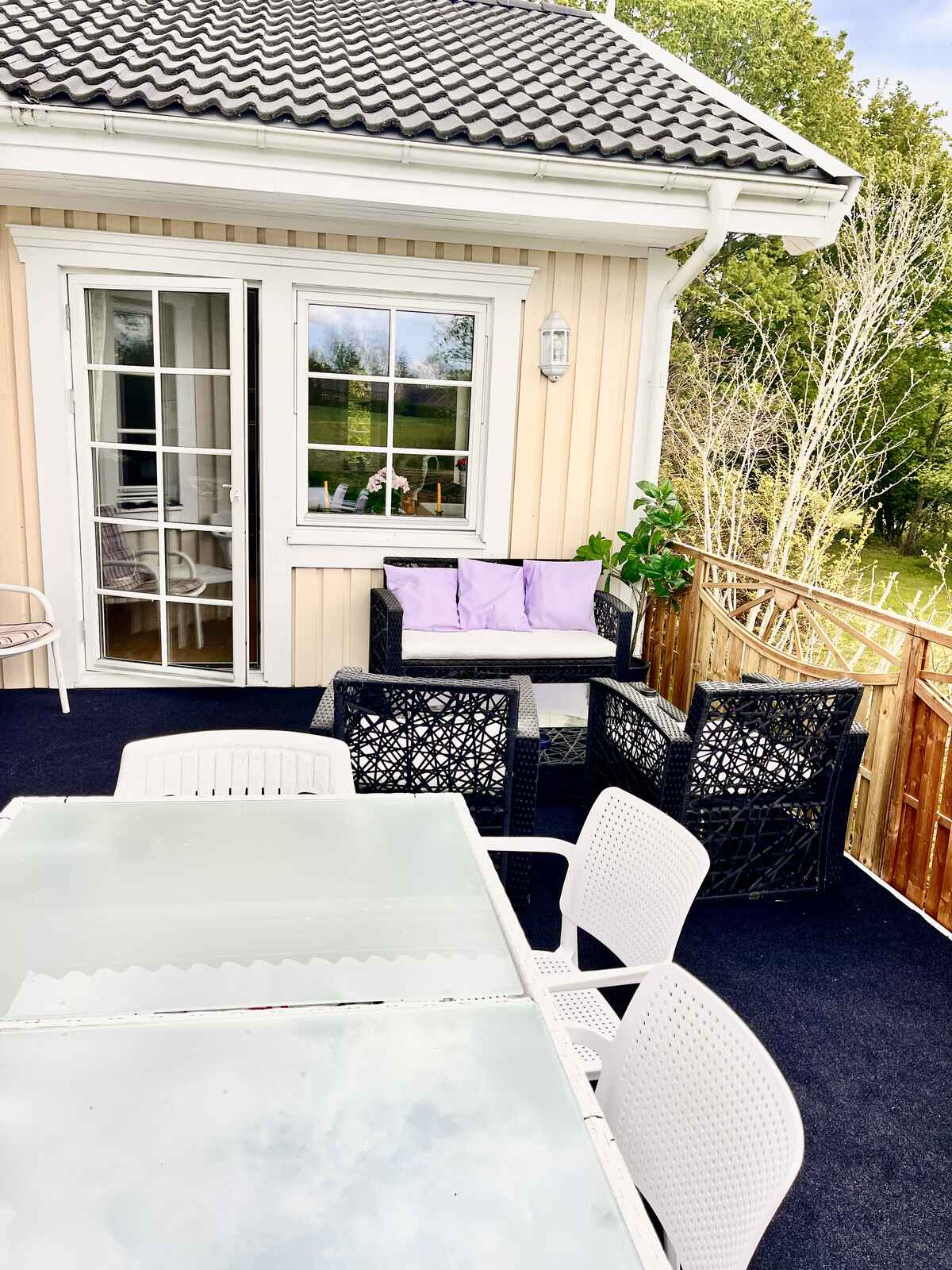 Kun 600 meter til stor børnevenlig strand giver let adgang til skønne badeture, kajaksejlads eller lange gåture langs kysten. De åbne marker omkring huset skaber en følelse af ro og uforstyrrethed.