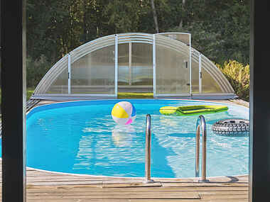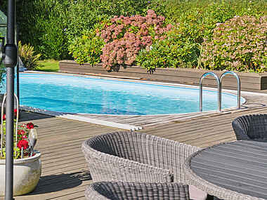 Den opvarmede udendørs pool tilbyder en forfriskende svømmetur, selv når vejret ikke er helt sommerligt. Poolen er tilgængelig fra uge 16 til uge 42 og giver en skøn mulighed for afslapning. Den velholdte terrasse er perfekt til både solbadning og hyggelige grillaftener med et glas vin.