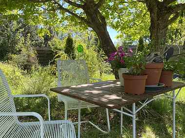 En solrig have omgiver huset og byder på smukke skyggefulde områder, perfekte til crocket, vikingespil eller en læsestund under birken. Baghaven er prydet med frugttræer og bærbuske, og du kan plukke friske lækkerier til din morgenmad, mojito eller marmelade.
