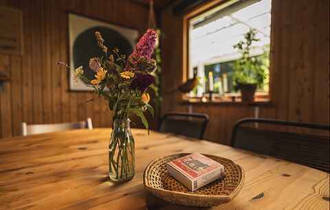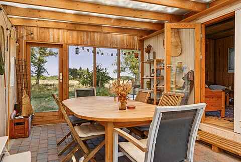 Sommerhuset er udstyret med alt, hvad I behøver for et komfortabelt ophold. Efter en dag med aktiviteter kan I slappe af på den åbne terrasse eller foran brændeovnen på kølige aftener.