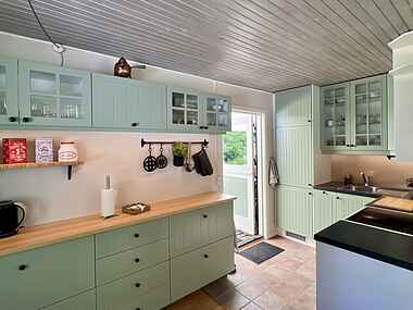 Veludstyret køkken med alt der skal bruges til at lave mad. (Kaffe, The, spisekammer m. krydderier).