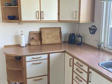 Huset bliver løbende vedligeholdt og fremstår lyst og venligt. Vi har indrettet det med en blanding af arvegods og nyere møbler. Der er også et lille kammer med to køjesenge på 80×190 (bedst egnet til børn), men sommerhuset er målrettet det modne par.