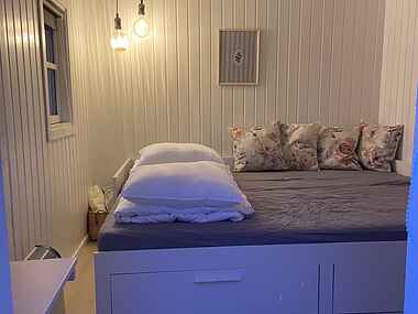 Sommerhuset byder på 49 m2 med en stue, hyggekrog med sofa, køkken, badeværelse og et soveværelse. Der er 2 sovepladser i stuen og 2 i annekset, hvilket gør det ideelt for små familier eller grupper. (Annekset kan ikke anvendes om vinteren)