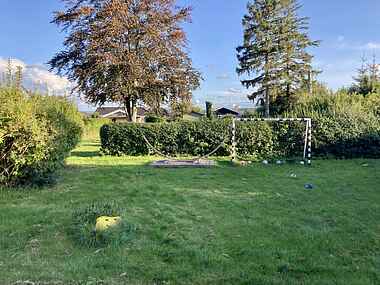 Sommerhuset byder på en rummelig grund på 1700 m2. Her er der mulighed for at børn og voksne kan hoppe på trampolin, eller skyde på fodbold mål i haven.