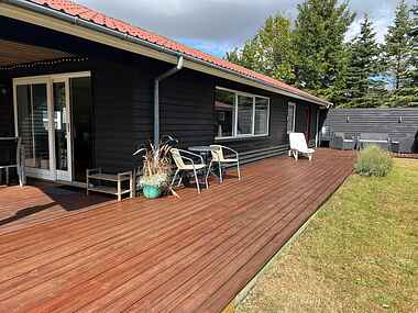 Sommerhuset rummer tre gode soveværelser, et stilrent og funktionelt køkken samt en lys stue med direkte udgang til en stor, solrig terrasse. Her kan I nyde morgenkaffen, tænde grillen eller slappe af i den udendørs spa/jacuzzi under åben himmel. Spaen skaber de perfekte rammer for ro og velvære – både på lune sommeraftener og på kølige dage.
