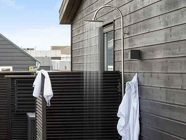 Kun 300 meter fra huset ligger vandet, som giver oplagte muligheder for både badeture og friske morgenture langs kysten. Den udendørs bruser gør det nemt at skylle sig efter strandbesøg. Terrassen er møbleret, så den kan bruges til både afslapning, samvær og lange sommeraftener.