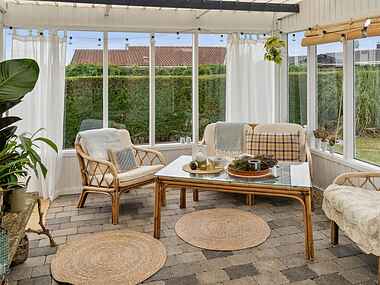 Traditionelt sommerhus med varm atmosfære og hyggelige detaljer