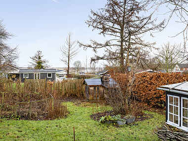Udenfor åbner en skøn have sig op, komplet med blomstrende bede og en lille dam, forbundet af naturstensstier. Fra træterrassen kan I nyde udsigten til Holbæk Fjord og betagende solnedgange, mens haven tilbyder et lukket og ugenert fristed.