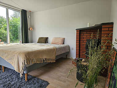 Er I mere end fire personer er der et fint anneks (ca. 20 m2) med varmepumpe og indgang fra haven. Her står der to senge (90×200 cm.), et stort skrivebord der kan fungere som en god arbejdsplads samt en sovesofa. Bemærk, at der ikke er toilet i annekset.