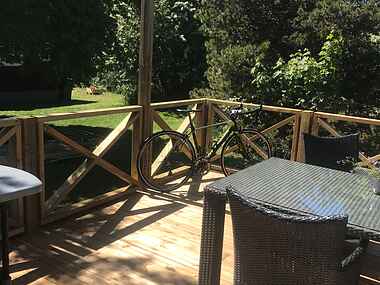 Grunden er stor og giver plads til leg, spil og udendørs aktiviteter. Huset byder på både udebruser og udendørs køkkenvask med koldt vand, hvilket gør det nemt at kombinere ferieliv inde og ude. Indenfor kan man slappe af med smart-tv og streaming.