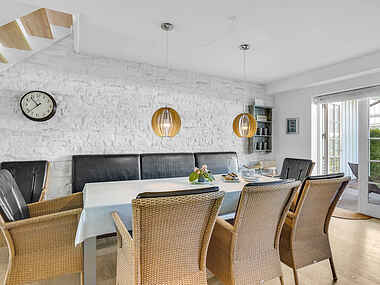 Den rummelige stue er ideel til samvær og hygge, udstyret med brætspil og hurtig internetadgang. Her er også en praktisk opvaskemaskine og vaskemaskine, der sikrer en bekvem ferie.