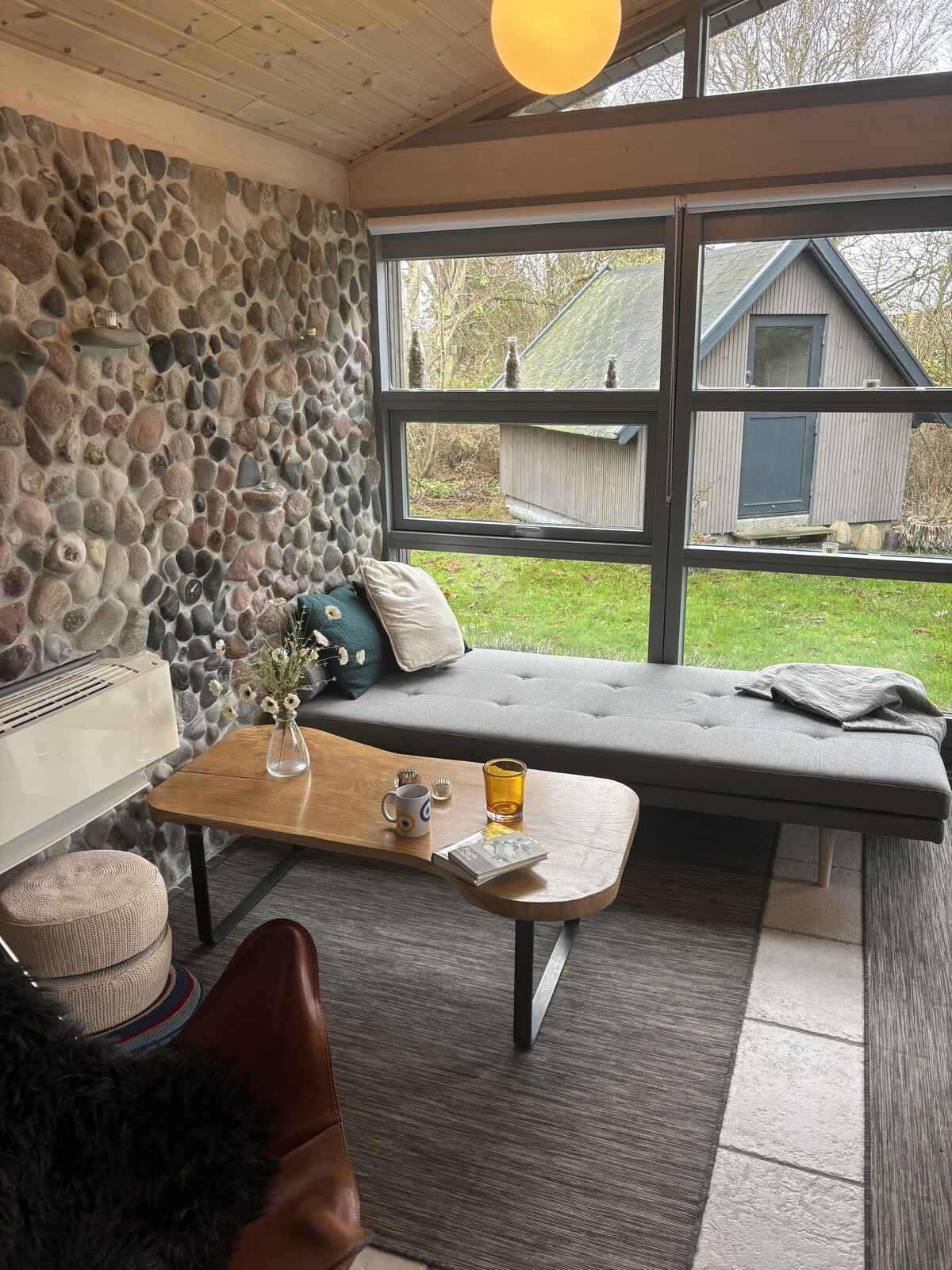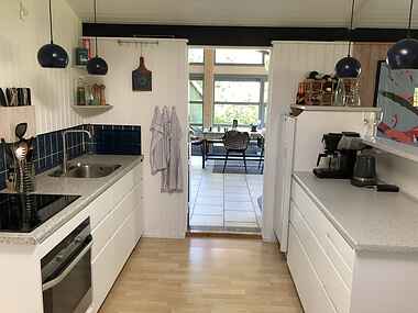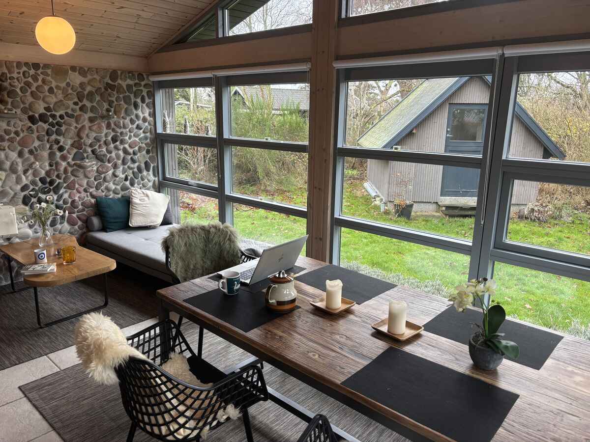 Udendørs venter en stor dejlig terrasse, hvor I kan nyde solen og grille om aftenen. Der er hyggekroge og flere gode spots og altid et sted, hvor der sol eller læ. Der er også en stor have med plads til leg og aktiviteter.