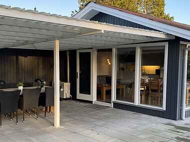 Den store overdækkede terrasse indbyder til hyggelige grill aftener. Haven er indhegnet.