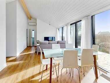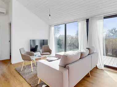 Opført i 2023, moderne træhus på 81 m² med 5 værelser, 1 badeværelse og 2 toiletrum. Indretning med lyst og åbent køkken/alrum og adgang til to dejlige træterrasser – perfekt til at nyde vin og udsigt ud over åbne marker.