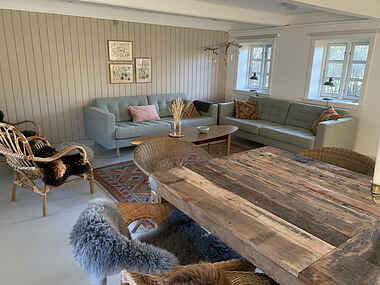 Drømmer du om en unik ferieoplevelse? Velkommen til dette imponerende sommerhus i Vig, Odsherred. Med 13 soveværelser og 26 sovepladser er der plads til hele familien. Hovedhuset byder på et industrikøkken og en stor opholds- og spisestue med et smukt plankebord. De mange værelser i sengefløjen og et roligt arbejdsværelse tilbyder komfort og produktivitet. I laden kan I hygge jer med billard, bordfodbold og bordtennis, mens det store rum under taget er ideelt til en afslappende yogatur med veninderne.