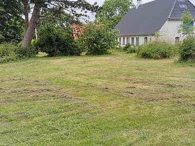 Sommerhuset ligger på en stor naturgrund på ca. 2500 m2 beplantet med træer og buske. Der er flere lækroge omgivet af buske og træer der kan anvendes som terrasse efter behov. Frugt fra træer og buske må gerne spises.