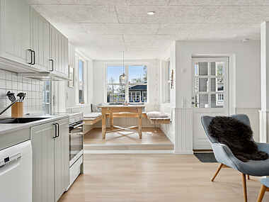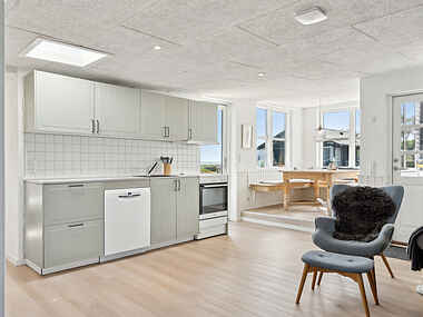 Huset ligger kun 100 meter fra stranden, hvor børnevenlige forhold gør det nemt at nyde en dag ved kysten. Udsigten til vandet skaber en særlig atmosfære, som giver ro og fornyet energi.