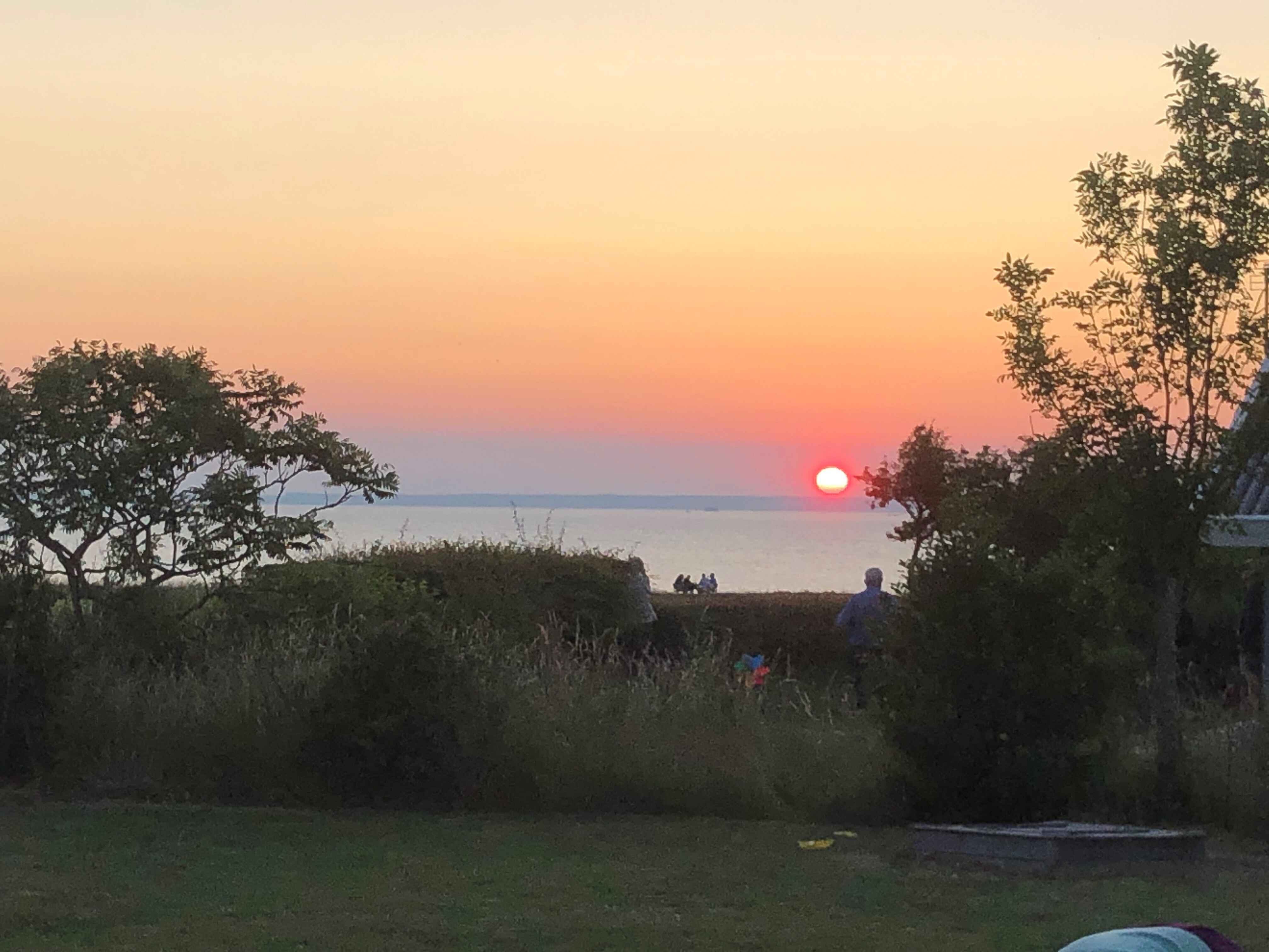 Udeområdet byder på træterrasser mod sydøst samt mod sydvest. På hovedterassen mod sydvest er der fin udsigt over Båring Vig – lillebæltsbroen og Fredericia øjnes også på en klar dag, i det fjerne. Den store grund grænser op til et engområde, hvorpå den lille sti går ned mod vandet, en ‘tur’ der klares på ca. 1 minut. Endnu en lille terrasse findes bag pavillonen i bunden af haven. Herfra nydes nogle af Danmarks flotteste solnedgange!