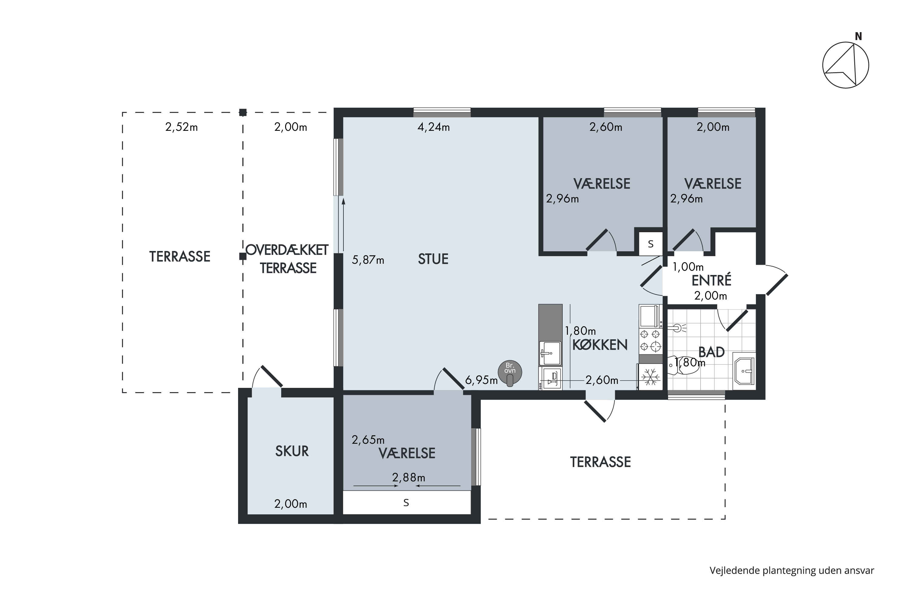 Indretningen til max 8 personer er god, og med 3 hyggelige soverum er der ofte plads til et par familier under samme tag. Sovepladser: 1x dobbeltseng (2), 1xfamiliekøje (3 – under faciliteter er denne registreret som en køjeseng og 1 enkeltseng), 1x enkelt seng(1) 1x køjeseng(2)).