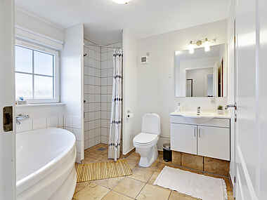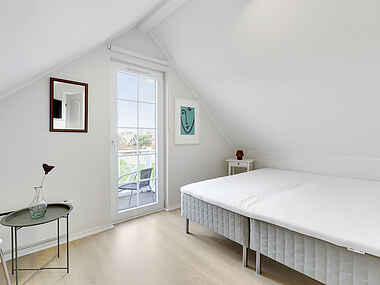 På 1. sal er der selvstændigt toilet, soveværelserne samt udgang til balkon med udsyn mod havet.