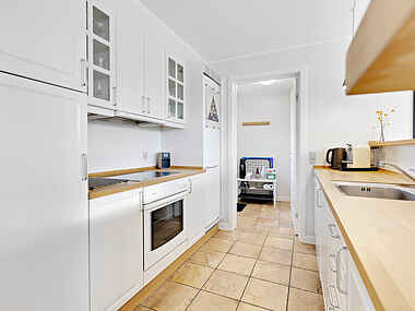 – Senge: måler 180/200 cm. Kan evt. adskilles. Man skal kun have betræk med – dyner og puder er i huset til alle sovende gæster. Dynerne måler 140/200 cm. og der er 7 stk.. Ingen børnedyner.