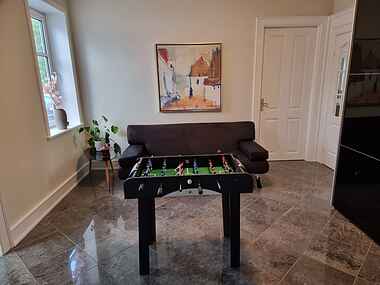 Udendørs byder huset på tre forskellige terrasseområder, udstyret med havemøbler, parasol og grill. Her kan I nyde feriens måltider og slappe af i skønne omgivelser. Et perfekt valg til en ferie med masser af muligheder for både afslapning og aktiviteter.
