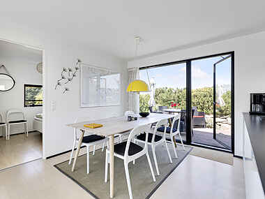 Dette sommerhus indbyder til en skøn ferieoplevelse, hvor modernitet møder komfort. Indretningen er præget af moderne møbler og senge, der skaber en afslappende atmosfære. Køkkenet er fuldt udstyret med stilfuldt køkkengrej og elegant service, og det er klogt placeret separat fra opholdsstuen – en praktisk detalje, især for familier med børn.