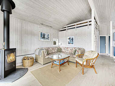 Sommerhuset ligger fredeligt med udsigt ud over den skønne natur. Sommerhuset rummer 2 værelser, et køkken-alrum med brændeovn og et stort badeværelse med spa og sauna. Udendørs finder du en skøn terrasse samt mulighed for privat parkering.