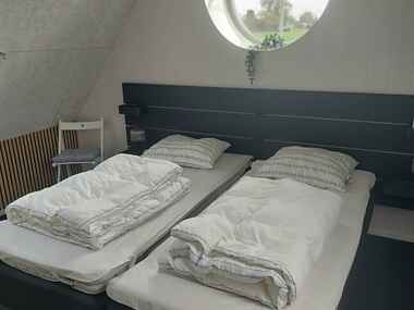 Dette rummelige feriehus på 175 m2 tilbyder komfort og hygge med fire soveværelser og plads til otte personer. To soveværelser ligger i stueplan, mens de øvrige to er placeret på 1. sal.