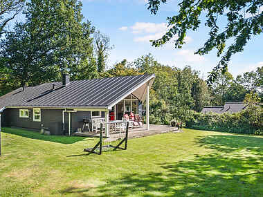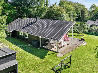 Den store grund på omkring 1700 m² har en naturskøn baghave med skov, der inviterer til udforskning og eventyr, og du vil nyde den maleriske udsigt mod nord over markerne. Hvorfor ikke hoppe på trampolinen (på eget ansvar), samle omkring bålpladsen eller slappe af i gyngen? Haven byder også på frugttræer og buske, der lokker med smagsoplevelser.