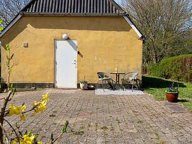 Udenfor venter en dejlig have, hvor sommerdagene kan nydes i fredelige omgivelser. Her er plads til leg, måltider under åben himmel og lange aftener med fuglesang.