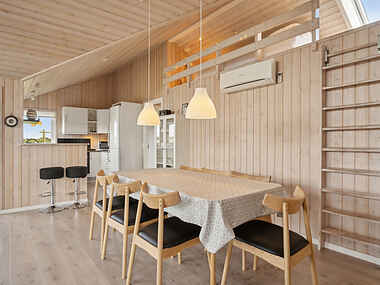 Indretningen er både stilfuld og praktisk, med veludstyrede værelser, der sikrer en behagelig ophold for alle gæster. Et af højdepunkterne i dette sommerhus er saunaen, som giver mulighed for ultimativ afslapning og velvære efter en dag med udendørs aktiviteter eller blot som en luksuriøs måde at starte eller afslutte dagen på.