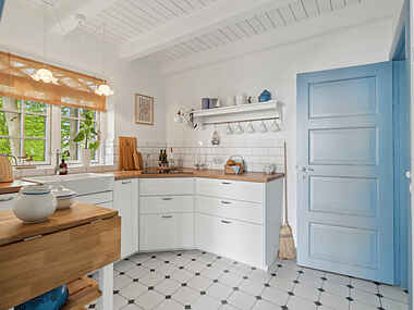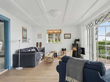 Det 98 kvadratmeter store sommerhus byder på et lille charmerende køkken i ægte landstil, der indeholder alt, hvad I skal bruge for at kunne tilberede et godt måltid. På de lune sommeraftener kan I også samles om madlavningen på terrassen, hvor maden kan tilberedes på gasgrillen samtidig med at udsigten nydes. Derudover er der et nyt badeværelse, der emmer af badehotelstil, og en stue der indbyder til ro, nærvær og læsning af en god bog.