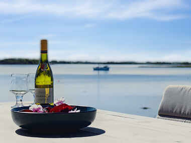 Faciliteterne i huset inkluderer et veludstyret, nyt køkken, ældre men fint badeværelse og en hyggelig stue med panoramaudsigt over bugten, omkringliggende øer og det hyggelige fiskerleje. Åben de store skydedøre og tag din morgenmad med direkte ud på den rummelige terrasse, kun 20 meter fra vandet, og lad dig fortrylle af den betagende udsigt.