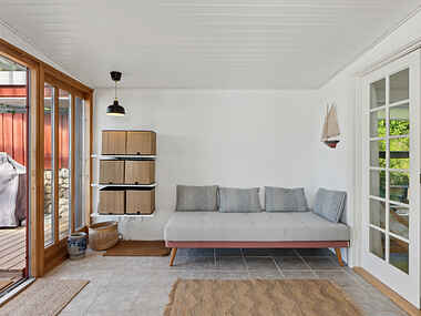 Faciliteterne i huset inkluderer et veludstyret, nyt køkken, ældre men fint badeværelse og en hyggelig stue med panoramaudsigt over bugten, omkringliggende øer og det hyggelige fiskerleje. Åben de store skydedøre og tag din morgenmad med direkte ud på den rummelige terrasse, kun 20 meter fra vandet, og lad dig fortrylle af den betagende udsigt.