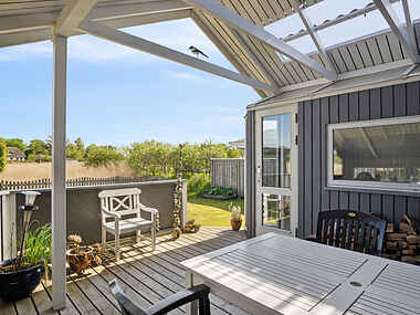 Sommerhuset har en fantastisk beliggenhed blot 50 meter fra vandet, hvor du kan nyde den friske luft og den smukke havudsigt direkte fra huset. Perfekt til morgenkaffen eller en stille eftermiddag.