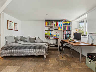Terrassen er delvist overdækket og vender mod haven, så man kan nyde udsigten i al slags vejr og se aftensolen gå ned. Fra huset kan solopgangen over Storebælt nydes, hvis man er tidligt oppe.