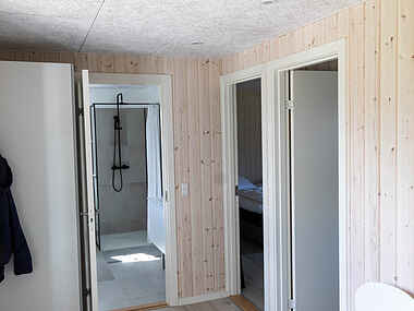 Nyd godt af den nye tilbygning fra 2023. Huset byder på tre komfortable soveværelser og et nyt badeværelse med bruseniche samt udendørs bruser. Sommerhuset har et fuldt udstyret køkken med opvaskemaskine.