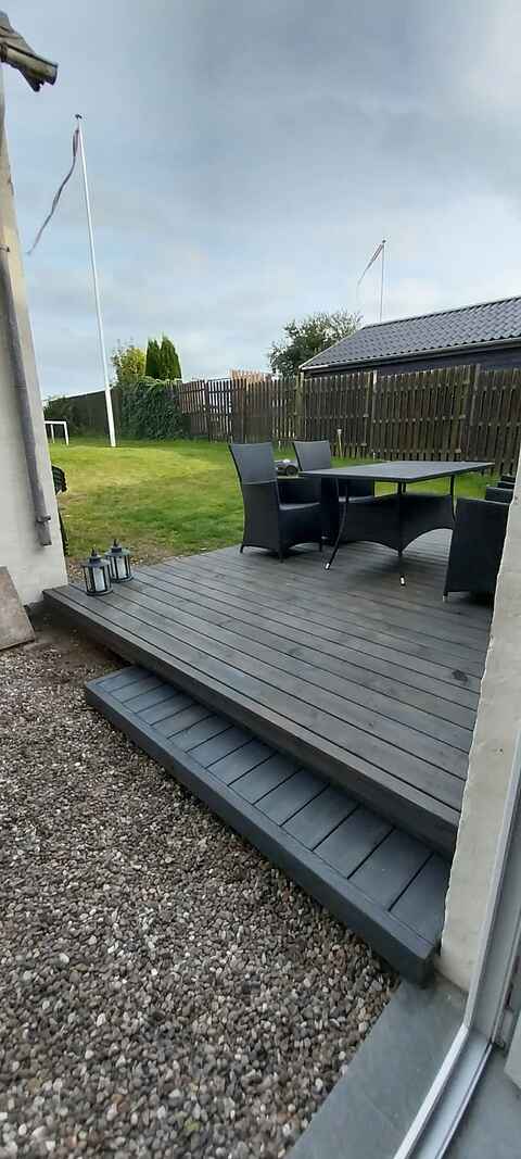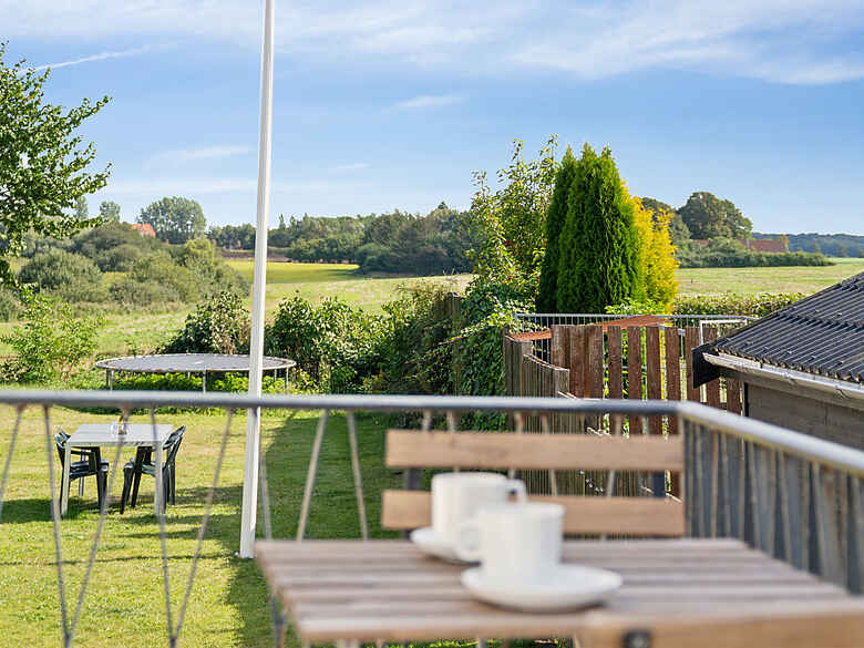 Huset er omgivet af en indhegnet have, der giver tryghed, hvis børn eller hunde er med på ferien. Udenfor kan du opleve masser af dyreliv tæt på og nyde stilheden i området. Haven og soveværelses balkonen har en dejlig udsigt over markerne