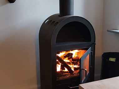 Stuen er indrettet til samvær og hygge. Her finder du et smart-tv samt et stort biograflærred til film og spil samt en brændeovn, der kan tændes på kølige aftener. Internet er tilgængeligt i hele huset, så du kan være online, når det ønskes.