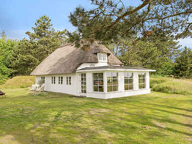 Lej et ægte gammelt Rømøhus med stråtag beliggende på skøn naturgrund med havudsigt.