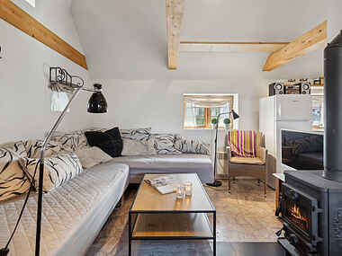Stuen byder på 2 senge, som bruges som sofa. Over badeværelse er der en hemst med dobbeltseng.